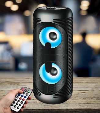 Переносная акустическая система Midi, с функцией BLUETOOTH (V5.0), 150-18000Гц, выходная мощность RMS 28Вт, аудиоплеер USB-flash, microSD-card, FM-радио, пульт ДУ, эквалайзер (поп, рок, джаз, классика), режимы MUTE, STANDBY, микрофонный вход, функция КАРАОКЕ, динамическая LED подсветка динамиков. Чувствительность - 80дБ. Входные интерфейсы - USB 2.0, Линейный вход 3.5 мм / AUX, Микрофонный вход 6.3 мм. Материал корпуса - ABS пластик, Металл. Время работы от батарей - 4-5ч. Размеры - 465х185х185мм.