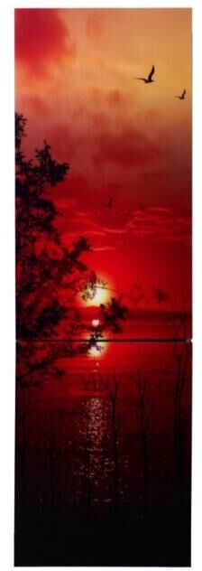 Габариты: 60x61.5x190 см. Цвет - рисунок Закат. Материал дверей - стекло. Общий объем 355 л. (245+100). Размораживание морозильной камеры ручное. Энергопотребление 295 кВтч/год. Класс энергопотребления A. Тип компрессора Классический. Количество компрессоров 1. Уровень шума 41 дБ. Мощность замораживания 5 кг/сут. Климатический класс N +16°C / +32°C.