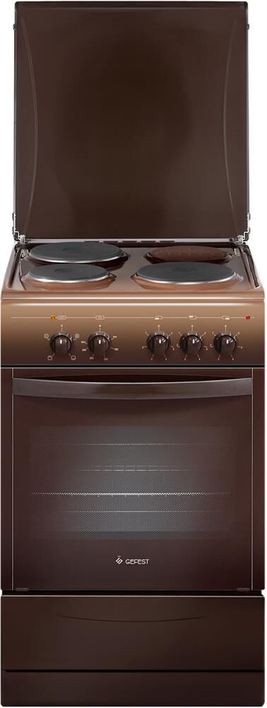 Габариты, ШхГхВ, см: 50x58.5x85; Цвет: коричневый; Дизайн: классический; Ширина, см: 50; Фасад: эмалированный; Варочная поверхность: эмалированная; Крышка стола: металлическая крышка; Количество зон приготовления: 3; Класс энергопотребления: В; Диапазон номинальных напряжений, В: 220-230; Номинальная потребляемая мощность электроэнергии, кВт: 5,5-6,02; Управление: механическое; Подсветка духовки: одинарная; Направляющие духовки: штампованные; Терморегулятор; Ящик для посуды и принадлежностей: откидная крышка; Ножки регулировочные; Сетевой шнур и вилка: в наличии; Объем духовки, л: 55; Мощность верхнего ТЭН духовки, кВт: 0,8; Мощность нижнего ТЭН духовки, кВт: 1,2