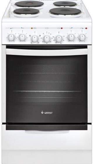Габариты, ШхГхВ, см: 50x58.5x85; Цвет: белый; Дизайн: классический; Ширина, см: 50; Фасад: эмалированный; Варочная поверхность: эмалированная; Крышка стола: металлическая крышка; Количество зон приготовления: 4; Класс энергоэффективности: А; Диапазон номинальных напряжений, В: 220-230; Номинальная потребляемая мощность электроэнергии, кВт: 5,05-5,52; Объем духовки, л: 55; Мощность верхнего ТЭН духовки, кВт: 0,8; Мощность нижнего ТЭН духовки, кВт: 1,2; Управление: механическое; Таймер: электромеханический; Гриль: электрический; Подсветка духовки: одинарная; Направляющие духовки: съемные проволочные; Терморегулятор; Ящик для посуды и принадлежностей; выдвижной ящик; Ножки регулировочные; Сетевой шнур и вилка: в наличии; Комплектность: решетка духовки, жаровня 2 шт