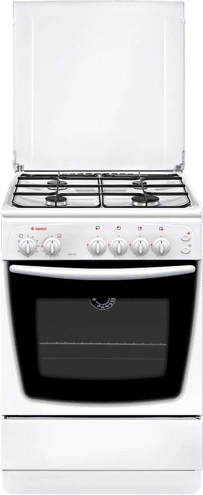 Газовая плита. Габариты ШхГхВ: 60х60х85 см. Цвет: белый. Варочная поверхность: эмалированная. Полезный объём духовки: 63 л. Выдвижной ящик для посуды и принадлежностей. Таймер механический. Газ-контроль духовки. Термоуказатель духовки. Ножки регулировочные. Штампованные направляющие духовки. Подсветка духовки одинарная. Электророзжиг горелок, кнопка розжига на панели. Стальные решетки горелок стола. Количество зон приготовления: 4. Металлическая крышка. Класс электробезопасности: II.