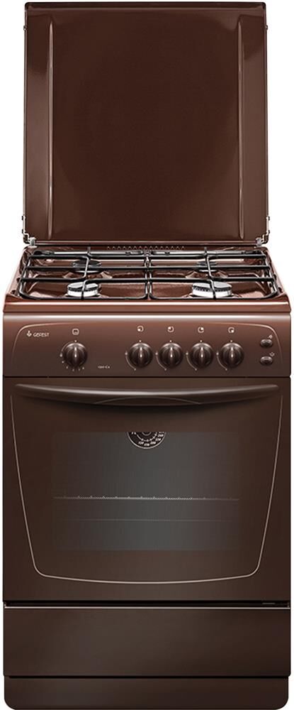 Газовая плита. Цвет: коричневый. Варочная поверхность: эмалированная. Габаритные размеры ШхГхВ: 60х60х85 см. Полезный объём духовки: 63 л. Выдвижной ящик для посуды и принадлежностей. Стальные решетки горелок стола. Газ-контроль горелок стола. Термоуказатель духовки. Газ-контроль духовки. Штампованные направляющие духовки. Ножки регулировочные. Электророзжиг горелок, кнопка розжига на панели. Подсветка духовки одинарная. Количество зон приготовления: 4. Диапазон номинальных напряжений, В: 220-230. Металлическая крышка. Класс электробезопасности: II.