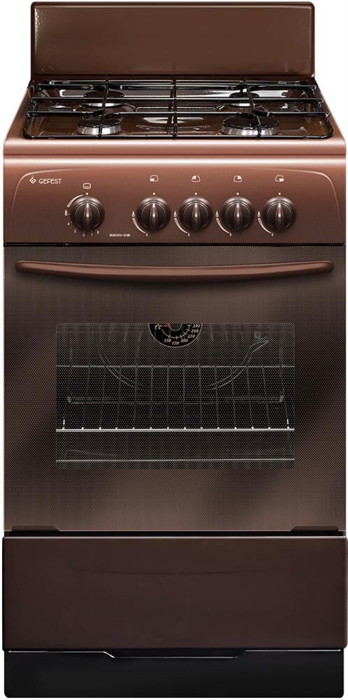 Габариты (ШхГхВ) 50x53x85 см. Цвет: коричневый Объем духовки, л: 42Количество зон приготовления: 4 Варочная поверхность: эмалированная Фасад: эмалированный Крышка: щиток Класс электробезопасности: II Газ-контроль горелок стола Термоуказатель духовки Газ-контроль духовки Штампованные направляющие духовки Стальные решетки горелок стола Ящик для посуды и принадлежностей с откидной крышкой