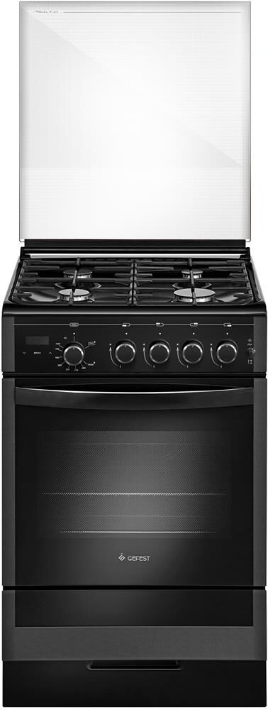 Габариты, ШхГхВ, см: 50x58.5x85; Цвет: черный; Дизайн: классик; Ширина, см: 50; Фасад: закаленное стекло; Варочная поверхность: эмалированная; Решетки стола: чугунные; Крышка стола: стеклянная; Класс электробезопасности: I; Объем духовки, л: 52; Мощность горелки духовки, кВт: 3,1; Мощность гриль-горелки, кВт: 1,9; Таймер: сенсорный; Газ-контроль горелок стола; Электророзжиг духовки: встроен в ручку; Электророзжиг горелок стола: встроен в ручки; Гриль: газовый; Вертел с электроприводом; Подсветка духовки; Направляющие духовки: съемные проволочные; Терморегулятор (термостат); Ящик для посуды и принадлежностей: выдвижной; Ножки регулировочные; Сетевой шнур и вилка: в наличии; Стекло дверцы духовки: двойное; Комплектность: жаровня, накладка для посуды малого диаметра, противень, решетка духовки; Комплект сменных сопел