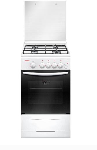 Габариты (ШхГхВ): 50x57x85см; Цвет: белый; Газовые горелки: 4; Электророзжиг горелок стола; Кнопка розжига на панели; Решетки горелок стола стальные; Полезный объём духовки: 42 л; Газ-контроль духовки; Направляющие духовки: штампованные; Термоуказатель; Ящик для посуды и принадлежностей: выдвижной; Подсветка духовки: одинарная; Стеклянная крышка