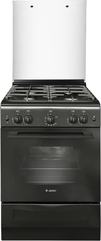 Габариты ШхГхВ, см: 60х60х85; Цвет: Черный "Антрацит"; Объем духового шкафа, л 52; Тип очистки: Гидролизная; Тип подключения: Газовый; Количество зон приготовления: 4; Материал варочной поверхности: Эмаль; Материал решеток варочной поверхности: Чугун; Крышка плиты; Стеклянная; Газ-контроль горелок стола; Газ-контроль духового шкафа; Электророзжиг горелок стола и духового шкафа; Кнопка розжига на панели; Тип направляющих духового шкафа: Съемные проволочные; Внутреннее покрытие духового шкафа: Эмаль легкой очистки SMART CERAMIC; Количество стекол в дверце духового шкафа: 2; Ящик для посуды и принадлежностей: Выдвижной ящик; Внутреннее освещение духового шкафа: Одинарное; Контроль температуры духового шкафа: Термостат; Режимы работы духового шкафа: Гриль, Нижний нагрев; Жаровня: 2шт; Регулировочные ножки; Комплект сменных сопел; Противень: 1шт; Решетка варочной поверхности: 2шт; Решетка духового шкафа: 1