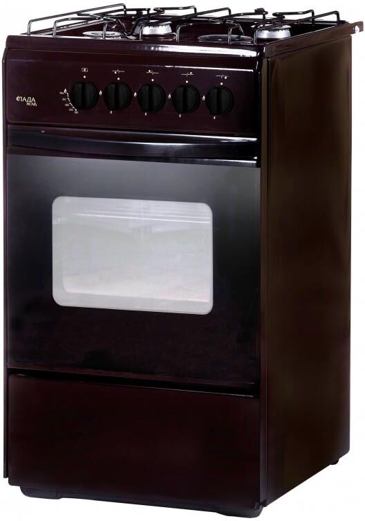 Тип плиты газовая * Цвет коричневый* Размеры: Ширина50 см, Глубина60 см, Высота85 см * Материал эмаль * 4-х горелочная, полный газ-контроль, проволочная решетка стола, хоз. отсек, решетка духовки, жаровня *