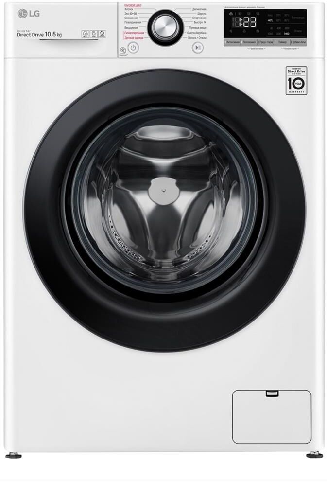 РАЗМЕРЫ (Ш х В х Г, ММ) 600 x 850 x 565 * ЗАГРУЗКА Стирка: 10.5 кг * Цвет белый, Цвет дверцы черный * Максимальная скорость отжима (об/мин) 1400 * Инверторный мотор с прямым приводом * Тип барабана Пузырьковый * ФУНКЦИЯ ПАРА * Управление Сенсорное * Детектор загрузки * Интеллектуальная система стирки AI DD * Диапазон температуры стирки ( ) Холодная/20/30/40/60/95 * Угол открытия дверцы 150° * Мобильная диагностика Smart Diagnosis *