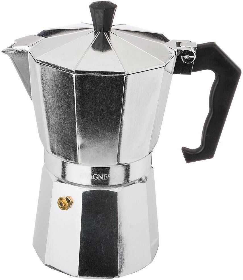 Гейзерная кофеварка ТМ AGNESS дарит возможность наслаждаться вкусным, ароматным и качественным кофе даже в домашних условиях. Напиток, приготовленный по принципу гейзера, получается более ароматным, чем фильтрованный кофе из капельных кофеварок. Основным преимуществом напитка из гейзерной кофеварки можно назвать отсутствие кофейной гущи, т.к. сама конструкция изделия исключает попадание осадка в сосуд для готового кофе. Эргономичная ручка очень удобна и позволяет не обжигаться. Кофеварку можно использовать на электрических, газовых или стеклокерамических видах плит. Конструкция кофеварок гейзерного типа настолько универсальна и проста, что такой прибор можно использовать дома, в офисе и даже при выезде на природу.