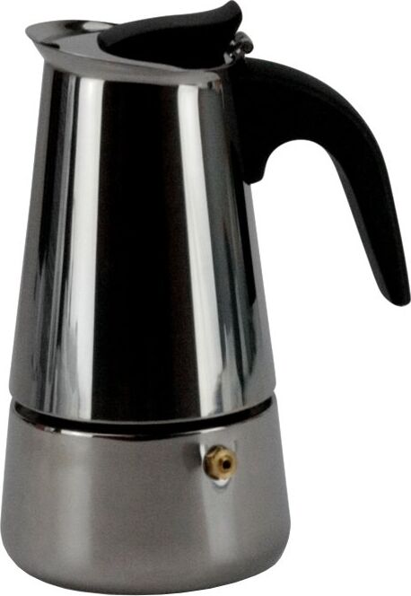 На 4 чашки. Нерж. сталь. Ручка и кнопка из нейлона (не нагреваются). Предохранительный клапан давления. Можно использ-ть на газ. плитах.Гейзер состоит из нижней емкости для воды, спец. сита-фильтра для кофе и верхнего чайничка для уже готового напитка.
