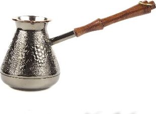 "Виноград" Медная турка классической конусообразной формы с утолщённым дном предназначена для приготовления ароматного натурального кофе. Внутренняя поверхность покрыта пищевым оловом. Наружная сторона украшена оригинальным орнаментом. Деревянная ручка является надёжным теплоизолирующим материалом. Подходит для всех типов плит, кроме индукционных. Проста в эксплуатации. Объём: 500 мл.