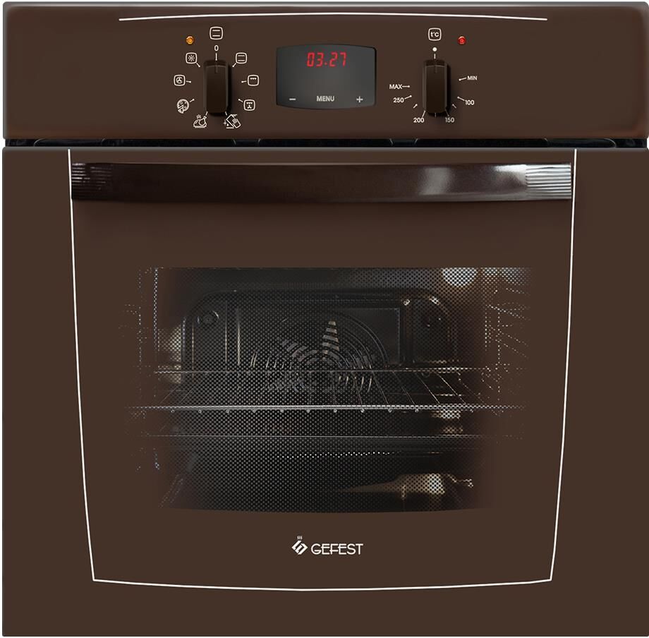 Духовой шкаф. Цвет: коричневый. Габаритные размеры ШхГхВ: 59.8х56.5х59.5 см Объём духовки: 55 л. Гриль электрический. Таймер сенсорный. Подсветка духовки двойная. Усиленный гриль с конвекцией. Съемные проволочные направляющие духовки. Масса нетто, 33,1кг. Диапазон номинальных напряжений, В: 220-230. Фасад: эмалированный. Сетевой шнур и вилка: в наличии. Класс электробезопасности: I.