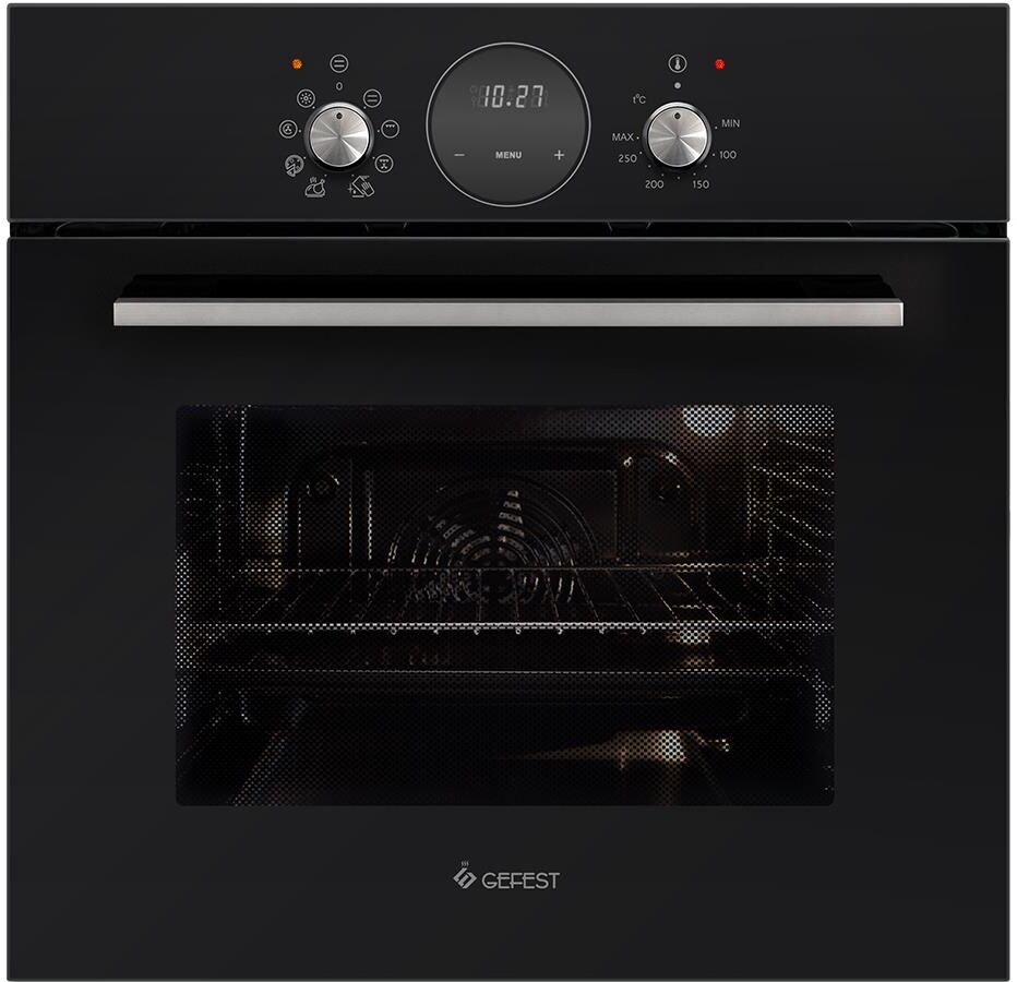 Духовой шкаф. Габаритные размеры ШхГхВ: 59.8х56.5х59.5 см. Цвет: черный. Панель управления: черная матовая. Полезный объём духовки: 55 л, Гриль электрический. Таймер сенсорный. Подсветка духовки двойная. Усиленный гриль с конвекцией. Съемные проволочные направляющие духовки. Утапливаемые ручки управления. Диапазон номинальных напряжений, В: 220-230. Фасад: эмалированный. Сетевой шнур и вилка: в наличии. Класс электробезопасности: I.