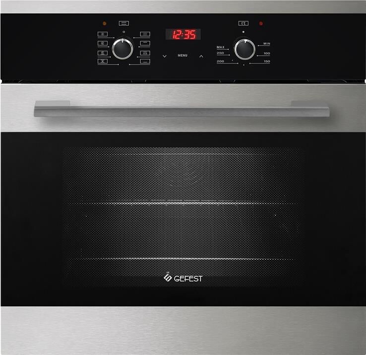 Габариты (ВхШхГ) 59,5х59,8х56,5см. Объем 52л. Таймер сенсорный. Конвекция. Вертел с электрoприводом. Электрогриль. Турбо-гриль. Шашлычница. Проволочные направляющие. Телескопические полки. Накладка из нержавеющей стали.