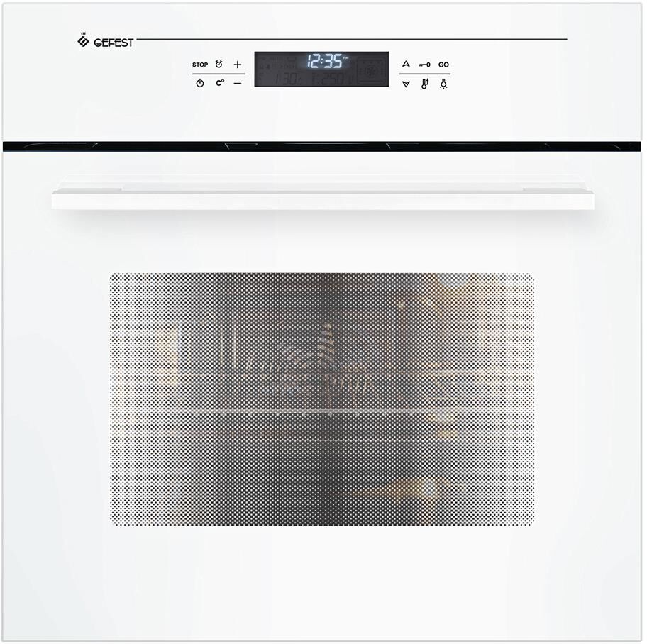 Габаритные размеры ШхГхВ: 59.8х56.5х59.5 см * Цвет: белый. * Полезный объём духовки: 52 л * Данная модель оборудована: Доводчиками «Soft-Close» и Тройным остеклением * Вертел с электроприводом * Таймер сенсорный * Гриль электрический * Телескопические направляющие * Доводчик «Soft-Close» * Тройное остекление * Подсветка духовки двойная * Ускоренный нагрев с конвекцией * Сенсорное управление * Шашлычница * Съемные проволочные направляющие духовки