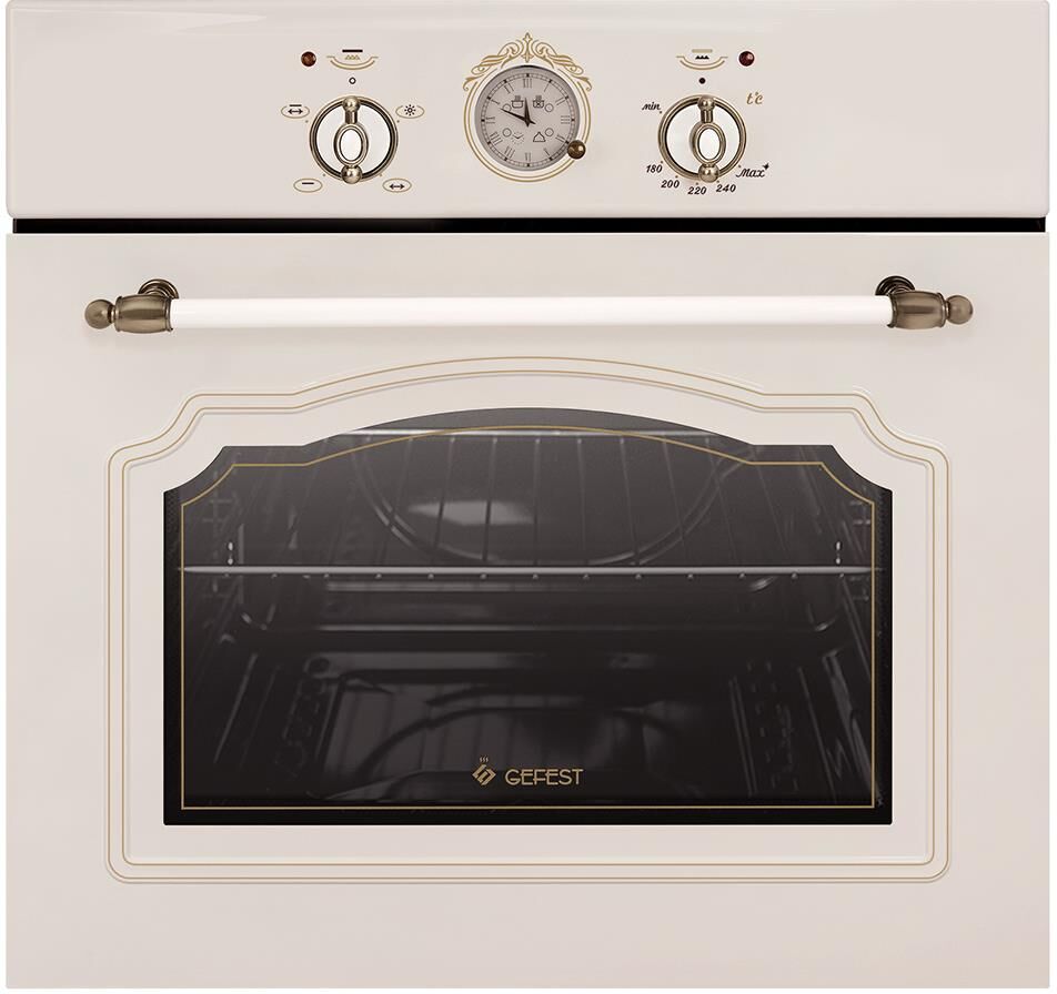 Габаритные размеры ШхГхВ: 59.8х56.5х59.5 см * Цвет: кремовый * Полезный объём духовки: 52 л * Вертел с электроприводом * Подсветка духовки двойная * Газ-контроль духовки * Съемные проволочные направляющие духовки * Газовая основная горелка * Таймер механический * Гриль электрический * Электророзжиг духовки, встроенный в ручку *