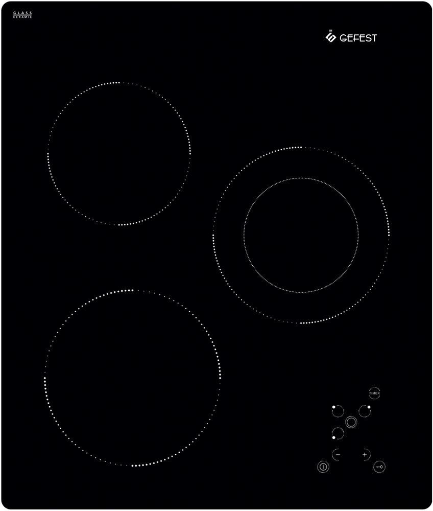 Размеры монтажного проема, ШхГ, см 41,6 х 49,4 * Ширина, см 45, Глубина, см 53, Высота, см 6 * Количество зон приготовления 3 * Цвет модели Черный * Блокировка * Автоматическое аварийное отключение * Автоматическое защитное отключение * Индикация включения и выключения * Индикация остаточного тепла конфорок стола * Система быстрого нагрева Booster (ускоренный разогрев) * Управление конфорками стола Сенсорное * Управление таймером конфорок стола Сенсорное *