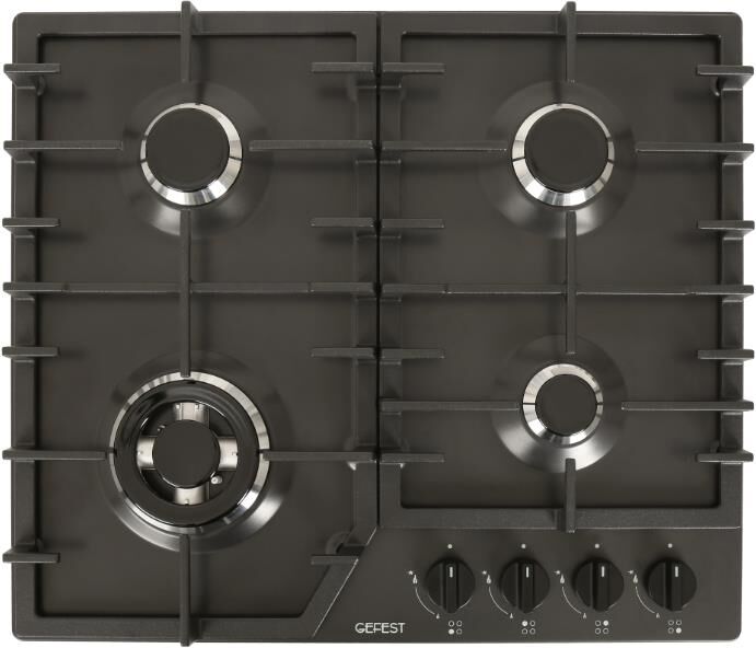 Габариты, ШхВхГ, см: 60х10х51,5; Размеры монтажного проема, ШхГ, см: 56 х 48,6; Тип подключения: Газовый; Количество зон приготовления: 4; Цвет модели: Черный; Материал варочной поверхности: Эмаль; Материал решеток варочной поверхности: Чугун; Двухзонная горелка варочной поверхности; Газ-контроль горелок стола; Электророзжиг горелок стола: Розжиг встроен в ручки; Управление конфорками стола: Механическое; "Фиксированное положение "малое пламя"; Диапазон номинального напряжения сети, В: 220-230; Номинальная частота сети, Гц: 50; Аксессуары: Комплект сменных сопел; Решетка варочной поверхности: 2; Уплотнительная лента: 1; Фильтр: 1