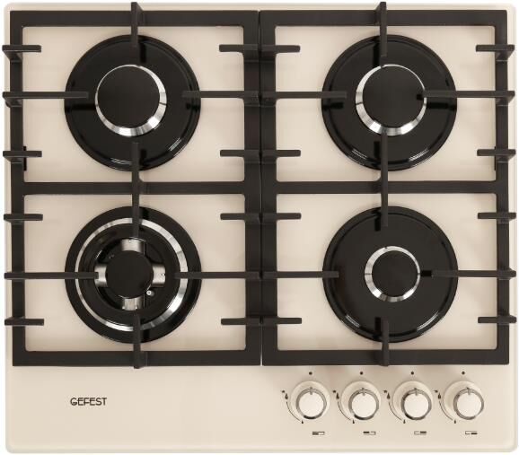 Размеры монтажного проема, ШхГ, см 55,4 х 48,6 * Ширина, см 60. Глубина, см 52,5. Высота, см 10 * Цвет модели Кремовый * Материал варочной поверхности Стекло * Материал решеток варочной поверхности Чугун * Двухзонная горелка варочной поверхности * Газ-контроль горелок стола * Электророзжиг горелок стола Розжиг встроен в ручки * "Фиксированное положение ""малое пламя"" *