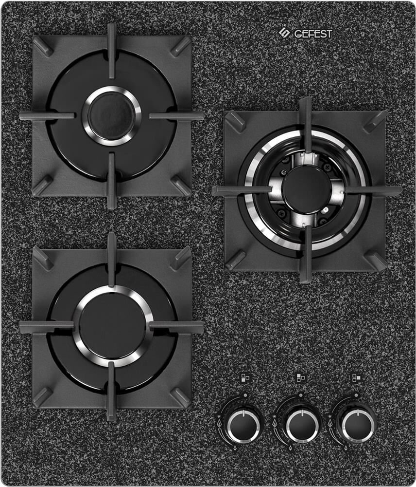 Панель варочная газовая встраиваемая независимая. Цвет черный с рисунком "камень". Варочная поверхность: закаленное стекло. Количество зон приготовления: 3. Расположение панели управления спереди. Переключатели поворотные. Электроподжиг автоматический. Газ-контроль конфорок. Материал решетки чугунные. Диапазон номинальных напряжений, В: 220-230. Присоединительная резьба газопровода: G 1/2-В. Сетевой шнур и вилка: в наличии. Габаритные размеры ШхГхВ 45x52.5x10см. Размеры монтажного проема, ШхГхВ 40.6x48.6см. Габаритные размеры в упаковке ШхГхВ, см: 56x50.5x16 Класс электробезопасности: I. Вес 10 кг.