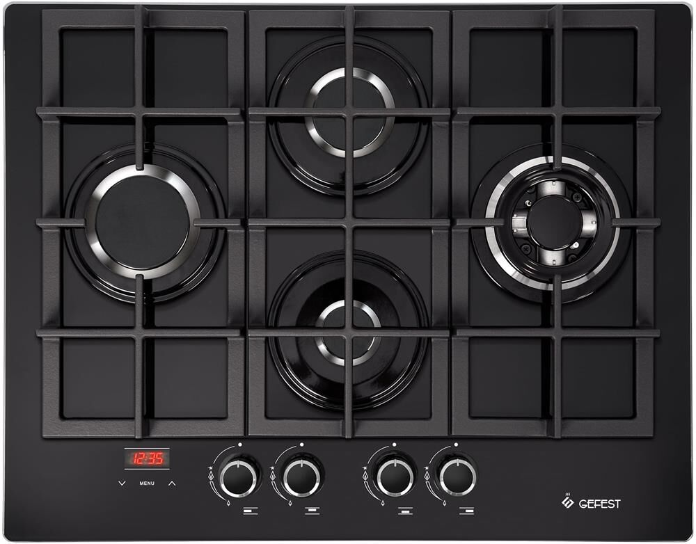 Габаритные размеры ШхГхВ: 67х52.5х10 см * Цвет: черный. Варочная поверхность: стеклянная * Газ-контроль горелок стола * Фиксированное положение «малое пламя» * Двухзонная горелка * Чугунные решетки горелок стола * Таймер сенсорный многофункциональный * Электророзжиг горелок, встроенный в ручки * Присоединительная резьба газопровода: G 1/2-В *