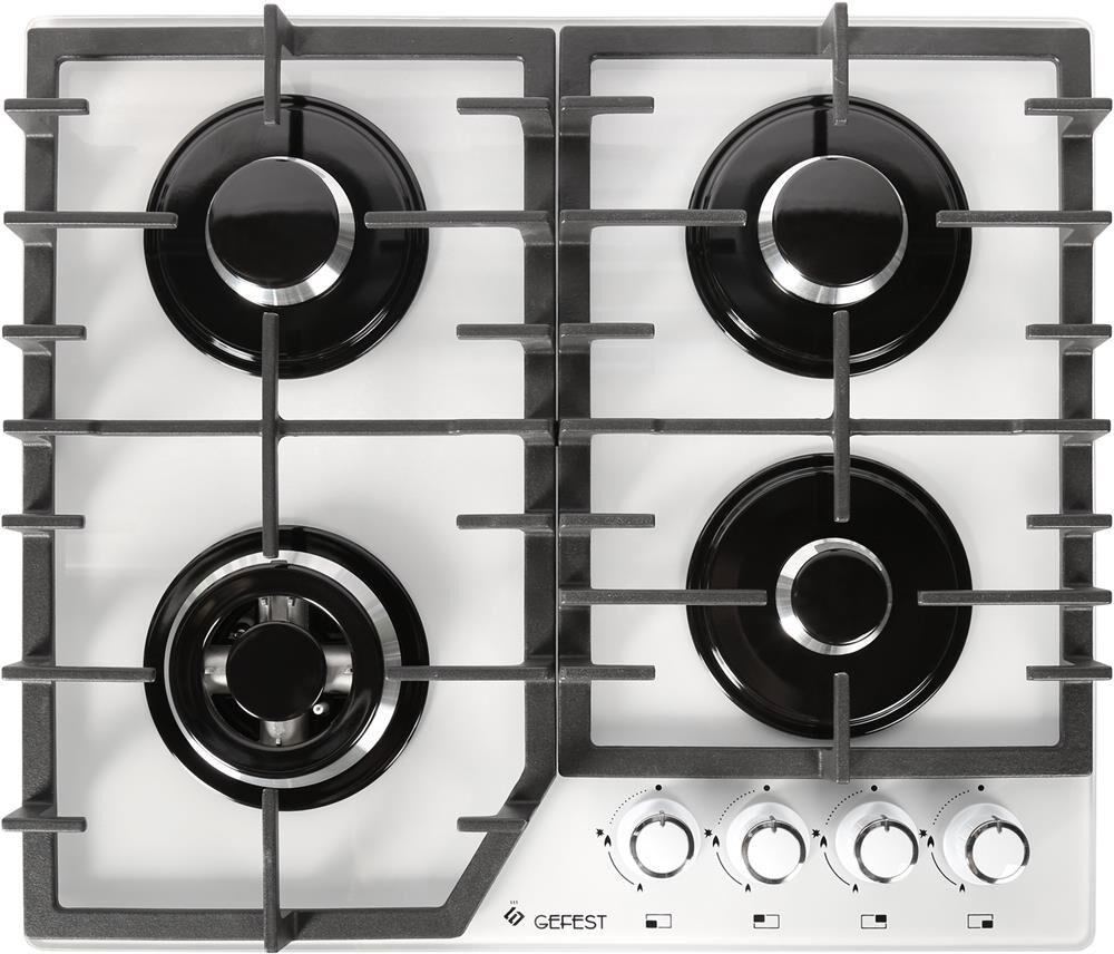 Размеры монтажного проема, ШхГ, см 55,4 х 48,6. Ширина, см 60. Глубина, см 52,5. Высота, см 10. Цвет модели Белый. Материал варочной поверхности Стекло. Материал решеток варочной поверхности Чугун. Двухзонная горелка варочной поверхности. Газ-контроль горелок стола. Электророзжиг горелок стола встроен в ручки. Управление конфорками стола Механическое. "Фиксированное положение ""малое пламя"".