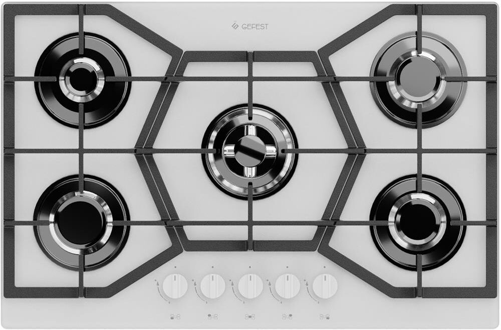 Размеры монтажного проема, ШхГ, см 65,4 х 48. Ширина, см 80 Глубина, см 52,5. Тип подключения Газовый. Количество зон приготовления 5. Цвет модели Белый. Материал варочной поверхности Стекло. Материал решеток варочной поверхности Чугун. Двухзонная горелка варочной поверхности. Газ-контроль горелок стола. Электророзжиг горелок стола встроен в ручки.