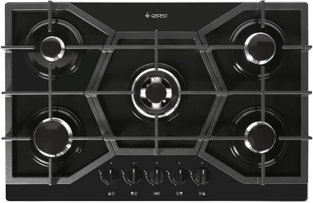 Размеры монтажного проема, ШхГ, см 65,4 х 48. Ширина, см 80, Глубина, см 52,5, Высота, см 10. Тип подключения Газовый. Количество зон приготовления 5. Цвет модели Черный. Материал варочной поверхности Стекло. Материал решеток варочной поверхности Чугун. Двухзонная горелка варочной поверхности. Газ-контроль горелок стола. Электророзжиг горелок стола встроен в ручки.