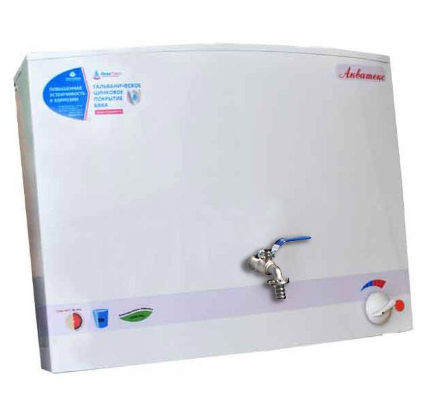 Бак - оцинкованная сталь, Объем бака - 17 л, Мощность нагрева - 1.25 кВт, Время нагрева до 60 град. - 30 мин., Номинальное напряжение - 220 В Габариты 480Х160Х370 Внутри бак покрыт гальваническим цинковым покрытием, имеющим повышенную устойчивость к коррозии. Корпус состоит из стальной емкости, куда вмонтирован трубчатый нагреватель, датчик аварийного отключения ТЭНа. На лицевой стороне водонагревателя находится кран для слива воды и ручка терморегулятора для установки необходимой температуры воды. Имеется провод для подключения к однофазной сети с евровилкой. Бак имеет пробку для слива воды.