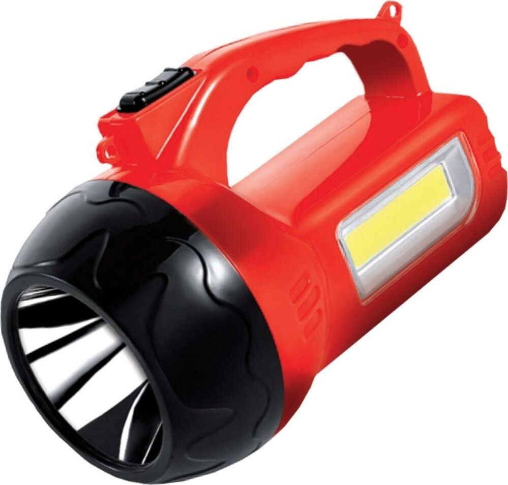 AFP910-3W прожектор+светильник / 1 LED мощностью 3 Вт + COB LED 3 Вт / аккумулятор 650 mAh 4V / время заряда: 11 ч / время непрерывной работы: до 4 ч / материал корпуса: пластик / цвет корпуса: красный/чёрный / индивидуальная цветная коробка