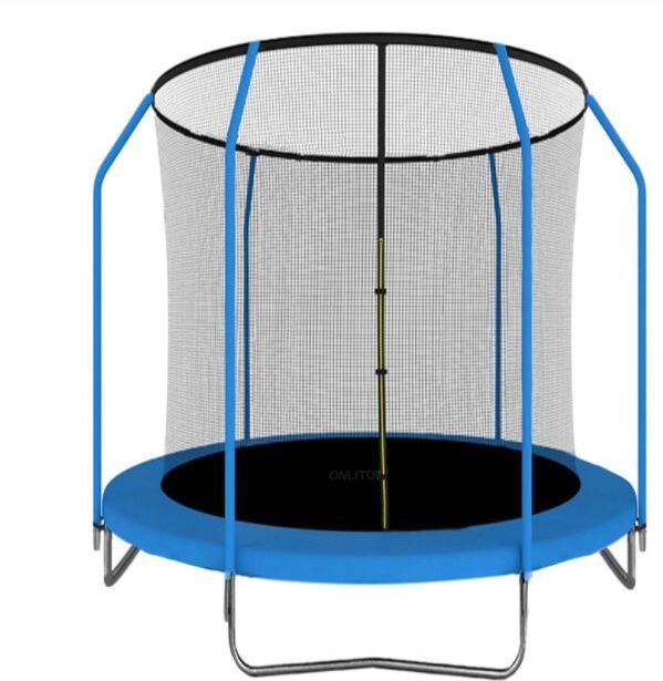 ONLITOP 5392838 Характеристики Размер: 1830 мм. Диаметр труб рамы батута: 6 штук диаметром 38 мм и толщиной стенок 1,2 мм. Гальванизированная сталь. Прыжковое полотно: полипропилен с защитой от воздействия ультрафиолета. Защита: ткань из ПВХ – защитный кожух батута, вспененный полиэтилен толщиной 15 мм – защитные чехлы на трубы рамы. Амортизирующий трос: 36 штук длиной 135 мм. Ножки батута: 3 штуки диаметром 38 мм и толщиной стенок 1 мм. Гальванизированная сталь. Материал сетки: PE. Количество оградительных стенок: 6 штук. Покрытие стоек оградительной стенки: рукав ПВХ, вспененный полиэтилен. Размер стоек оградительной стенки: диаметр 25 мм с толщиной стенок 1 мм. Гальванизированная сталь. Размер упаковки (Длина Ширина Высота) 101 см х 49 см х 23 см Габариты и вес Вес брутто 29.3 кг Особенности Диаметр, см 183 Цвет Синий Максимально допустимый вес, кг 120 Особенности Страховочная сетка Назначение Универсальный