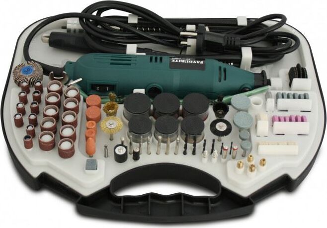Потребляемая мощность (Вт) 170. Число оборотов на холостом ходу (об/мин) 10000. Размер цанги (мм) 2,4/3,2. Кол-во насадок (шт) 210. Блокировка шпинделя Да. Компактная конструкция Да. Быстрая замена щеток Да. Складное кольцо для подвеса инструмента Да. Комплектация Кейс Нет. Ключ Да. 210 насадок Да. Гибкий вал Да.