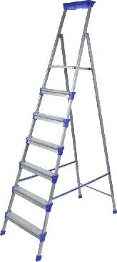 Стремянка металлическая 7 ступеней, высота до рабочей площадки 1505мм, ширина ступени 65мм, многофункциональный лоток для инструментов, страховочная лента, максимальная нагрузка 120кг