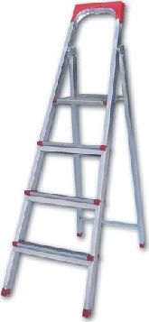 Материал - облегченная сталь, высота рабочей площадки - 81 см, 4 ступени. Надежная и прочная. Для удобства на лестнице предусмотрен бокс для мелочей и инструмента. Вес - 5,2 кг.