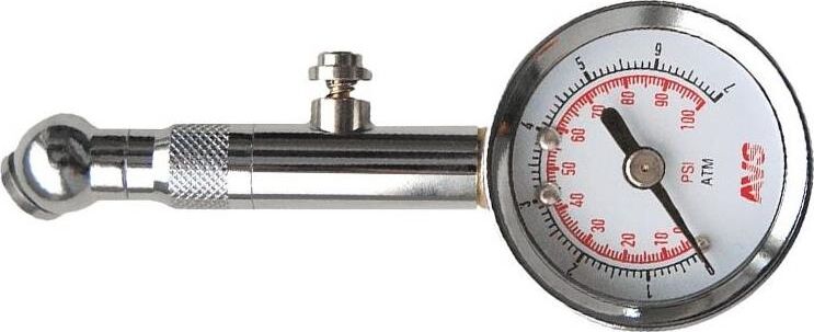 Аналоговый манометр, с помощью которого, без затруднений, любой автолюбитель сможет измерить давление в шинах. Необходимость такого аксессуара знает каждый автомобилист, хоть раз столкнувшийся с повреждением покрышки или ухудшением управляемости из-за приспущенных колес. • Две шкалы измерения давления (атм (bar) -> psi) • Диапазон измерений: 2,00-100,00 PSI (фунт/кв. дюйм); 0,15-7,00 BAR (атм) • Погрешность прибора: ± 0,05 BAR • Спускной клапан