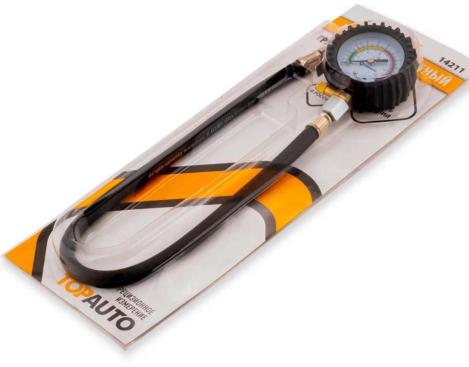 Автомобильный манометр для шин отечественного производителя TOPAUTO максимально возможным давлением 12 атм. ориентирован прежде всего на использование с грузовыми и коммерческими автомобилями, а также автобусами и крупной спецтехникой – для измерения давления в их шинах. Практичный металлический корпус, защитный резиновый чехол, масло-и бензостойкий шланг, компактные размеры. Есть клапан сброса давления. Упаковка - блистер.