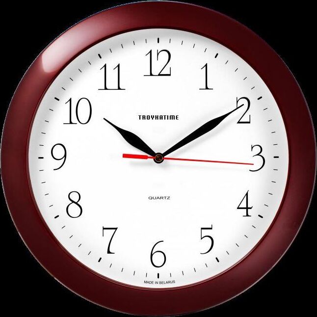 Часы настенные, модель 11131113, диаметр 290 мм, стекло пластиковое, пластиковый обод, цвет-бордовый.