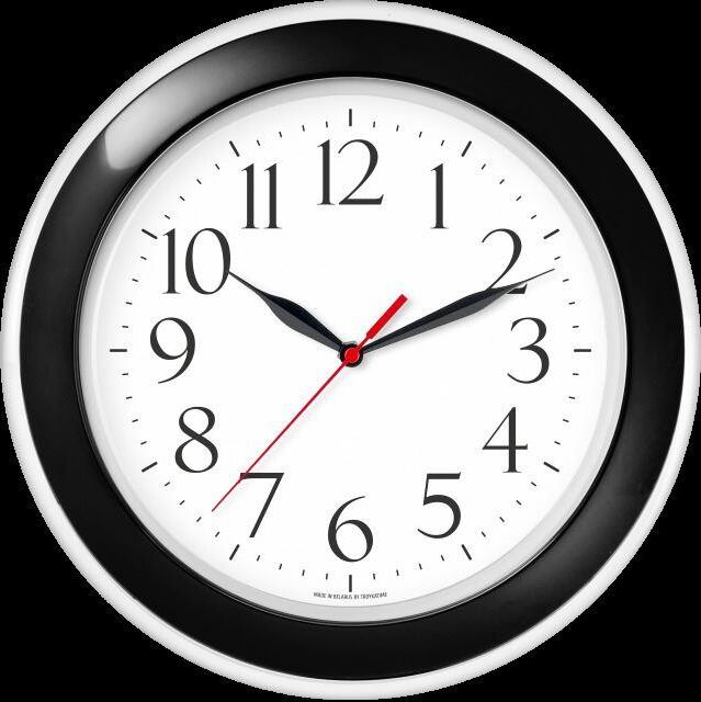 Часы настенные, модель 122201203, диаметр 300 мм, стекло пластик, пластиковый обод, цвет-прозрачный/черный.
