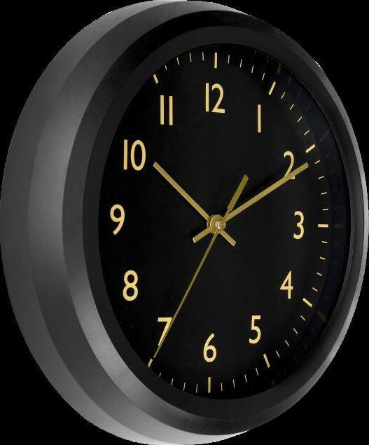 Часы настенные, модель 23230239, диаметр 250 Х 40 мм, корпус - пластик черный матовый, минеральное стекло, цифры золото