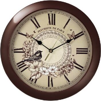 TROYKA 11134177 часы настенные (Синичка) Тип механизма: кварцевый. Материал корпуса: пластик. Форма корпуса: круглые. Цифры: римские. Ход: плавный.