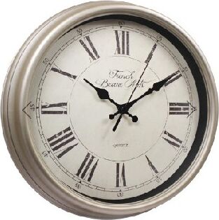 Форма — круг. Материал корпуса — пластик. Цвет корпуса — жемчужно-бежевый. Циферблат — римские цифры. Защита циферблата — силикатное стекло. Вывод времени — стрелочный. Механизм — кварцевый с плавным ходом. Батарейка АА (в комплект не входит). Гарантийный срок — 12 мес.