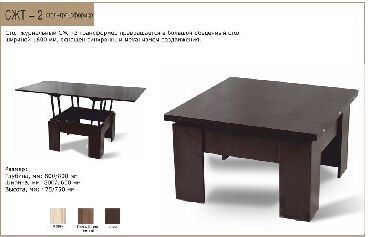Стол журнальный СЖТ-2 трансформер превращается в большой обеденный стол шириной 1600 мм, оснащен синхронным механизмом раздвижения. Размер: ГхШхВ (800/800х800/1600х475/750)мм. Цвет: Венге