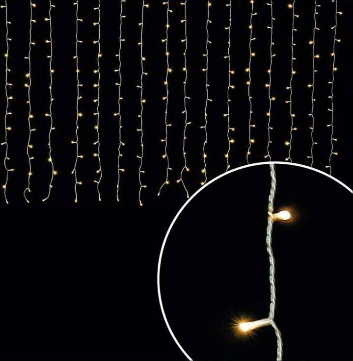 Электрогирлянда светодиодная "Бахрома". белый теплый. 360LED ламп. длина рабоче части 2м. длина свисающих частей 1,5м, расстояние между. 8 режимов мигания. питание от сети 220-240В, 50 Гц. мощность 8Вт. для использования внутри помещений класс защиты IP20. прозрачный провод. ПВХ, алюминий, медь, LED лампы. провод медь - толщина мм.