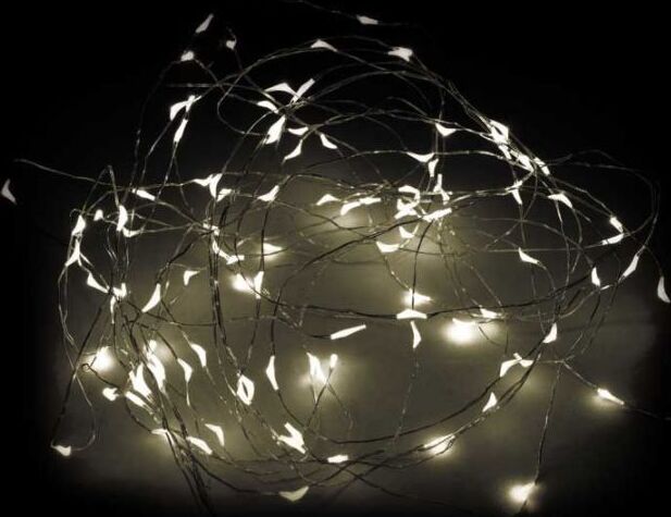 Электрогирлянда светодиодная "Дождик". белый теплый. 100LED ламп, 10 нитей по 10LED ламп, длина 1м, гибкие. без мигания. питание от сети 220-240В, 50 Гц , мощность 3,6Вт. для использования внутри помещений класс защиты IP20. прозрачный провод. материал: ПВХ, алюминий, медь, лампы.
