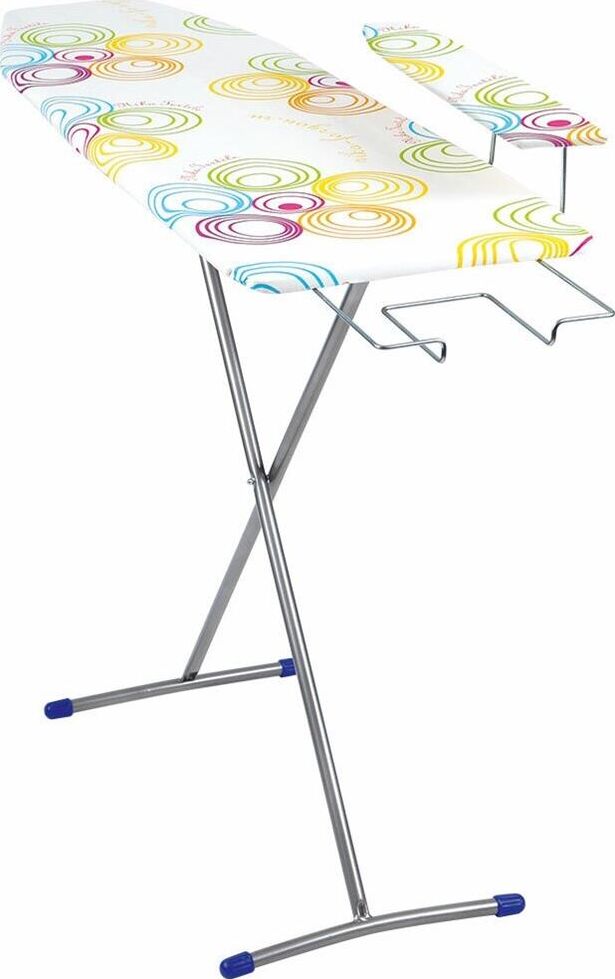 Гладильная поверхность -ДСП (1220х345мм), два положения высоты h-70, h-80см, выдвижная подставка под утюг, съемный подрукавник, материал чехла-хлопок, max нагрузка на глад.поверхность 10кг.,вес изделия- 4,52кг. Индивидуальная термоупаковка.
