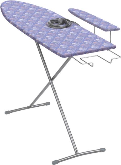 Гладильная поверхность -ДСП (1120х345мм), два положения высоты h-70, h-80см, выдвижная подставка под утюг, съемный подрукавник, электросоединитель 2,2 м, розетка, материал чехла-хлопок, max нагрузка на глад.поверхность 10кг