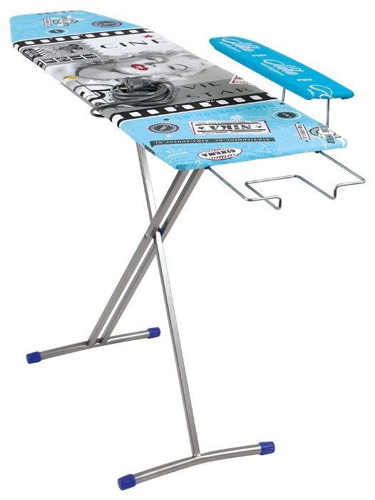 Гладильная поверхность -фанера (1225х345мм), два положения высоты h-70см, h-80см, выдвижная подставка под утюг, съемный подрукавник, электросоединитель 2,2 м, розетка, материал чехла-хлопок, max нагрузка на глад.поверхность 15кг