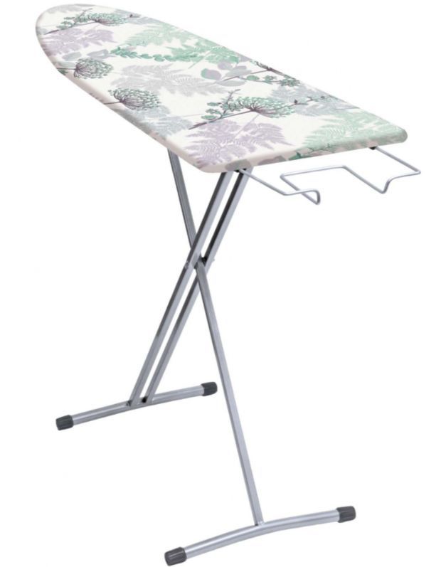 Гладильная поверхность -фанера (1225х345мм), одно положения высоты h- 80см, выдвижная подставка под утюг, без подрукавника, материал чехла-хлопок, max нагрузка на глад.поверхность 15кг, вес изделия-5,3кг. Индивидуальная термоупаковка.