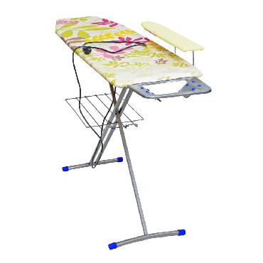 Гладильная поверхность -фанера (1225х380мм) плавно регулируемая высота до 90 см, EUROподставка под утюг с термосиликоном, съемный подрукавник, электросоединитель 2,2 м, розетка, полка для белья, материал чехла-хлопок, max нагрузка на глад.поверхность 15кг, вес изделия-7,3кг. Индивидуальная термоупаковка.