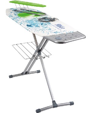 Гладильная поверхность -фанера (1225х400мм) плавно регулируемая высота до 90см, EUROподставка под утюг с термосиликоном, переносной подрукавник, электросоединитель 2,2м, розетка, полка для белья, материал чехла-хлопок, max нагрузка на глад.поверхность 25кг.,вес изделия-8,4кг. Индивидуальная термоупаковка